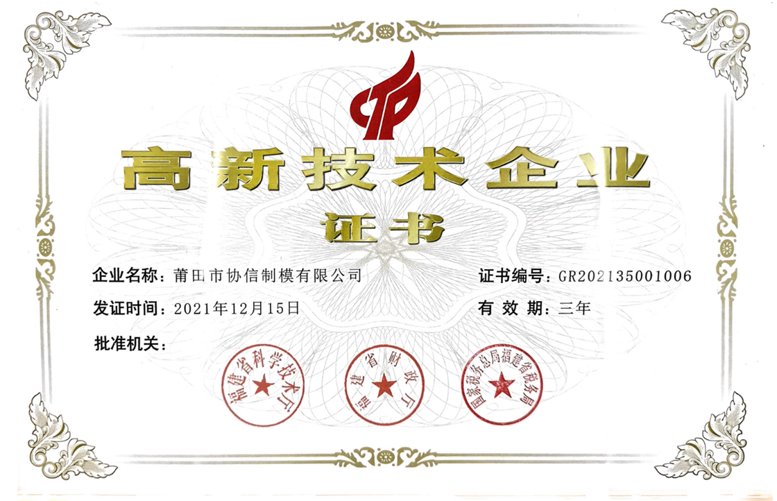 公司信譽(yù)度良好,2014年開始至今,連續(xù)多年獲得“納稅大戶”稱號(hào)。公司的管理和技術(shù)力量雄厚,榮獲了“福建省科技小巨人企業(yè)”、“科技型中小企業(yè)”、“市級(jí)企業(yè)技術(shù)中心”等稱號(hào)。2021年獲得“國(guó)家高新技術(shù)企業(yè)”認(rèn)定,通過(guò)GB/T29490-2013《知識(shí)產(chǎn)權(quán)管理體系認(rèn)證》。